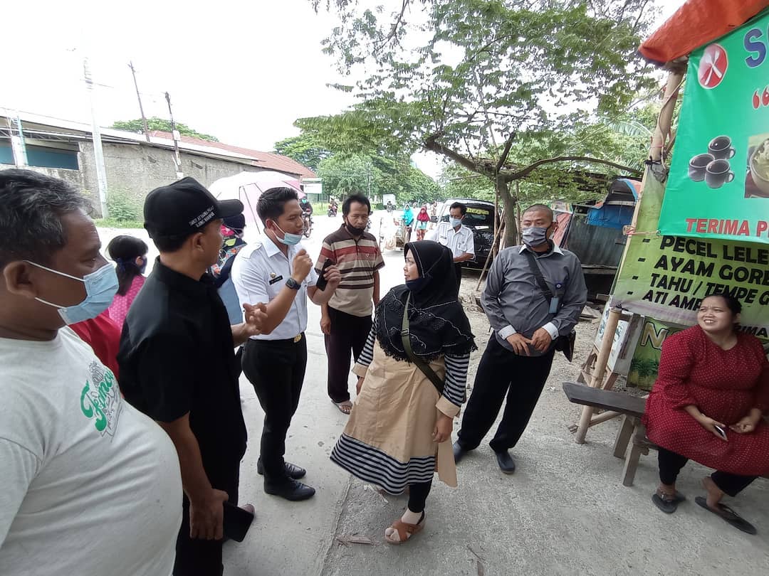 Lurah Bahagia Khoirul Anwar, S. STP, M.Si didampingi Kasie PMD Saman, S.Pd beserta staf dan Ketua RT/RW meninjau lapak Pedagang Kaki Lima yang berjualan di lahan sepadan saluran, Jalan KH Tajjudin, Kelurahan Bahagia, Kecamatan Babelan, Kabupaten Bekasi.
